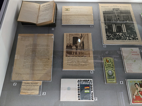Además, la muestra también expone documentación de interés sobre los múltiples izados de la bandera en distintas instituciones los meses previos a la celebración de la Asamblea de Córdoba de 1933, donde se aprobó un anteproyecto de Estatuto. En concreto, la fotografía de la izada de la bandera en el Ayuntamiento de Aracena, publicada en la revista Blanco y Negro, (nº 2.164), el 4 de diciembre de 1932 y la fotografía del homenaje a la bandera en la Diputación de Sevilla, publicada en Mundo Gráfico, el 2 de noviembre de 1932.