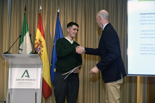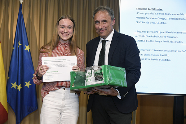 Los ganadores Jesús Sánchez Ramos y Sara Mesa Ortega recogieron los galardones de esta iniciativa convocada por la Consejería de Educación en colaboración con el Centro de Estudios Andaluces