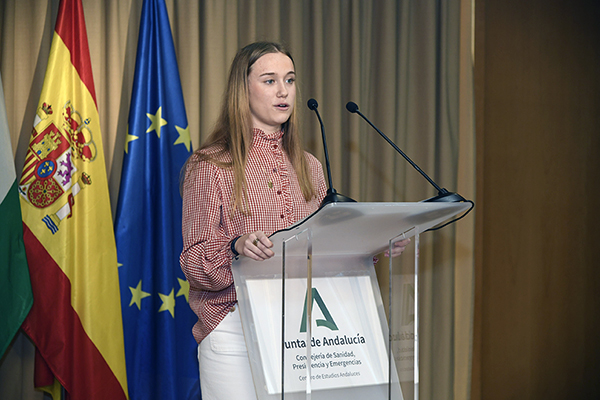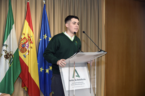 Los premiados, Jesús Sánchez Ramos, alumno de 4º de ESO del CDP Padre Jacobo de Málaga y Sara Mesa Ortega, alumna de 1º Bachillerato del IES Zoco de Córdoba, leyeron sus respectivos relatos ‘Símbolos que transmiten vida, son memoria viva’ y ‘Dos banderas, una historia’ antes de recoger el diploma y el lote de regalos del Museo de la Autonomía de Andalucía.